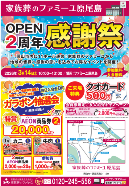ファミーユ原尾島にて「OPEN2周年感謝祭」を開催致しますっ!!
