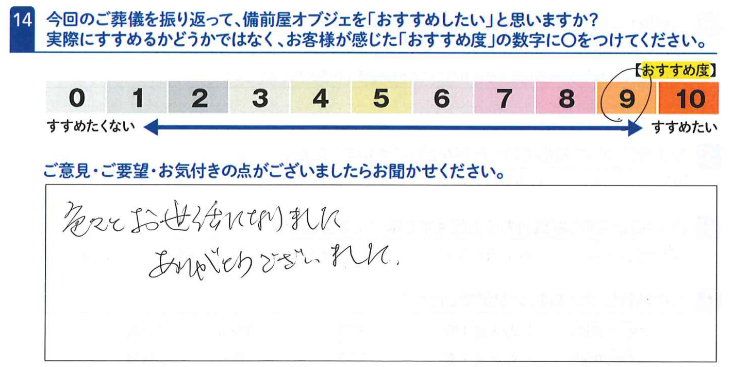オブジェ牛窓をご利用のお客様 2026年3月29日 ホール名 : オブジェ牛窓 プラン : きずなプラン エリア : 瀬戸内市 宗派 : 真言宗 葬儀の形態: 家族葬 色々とお世話になりました。ありがとうございました。